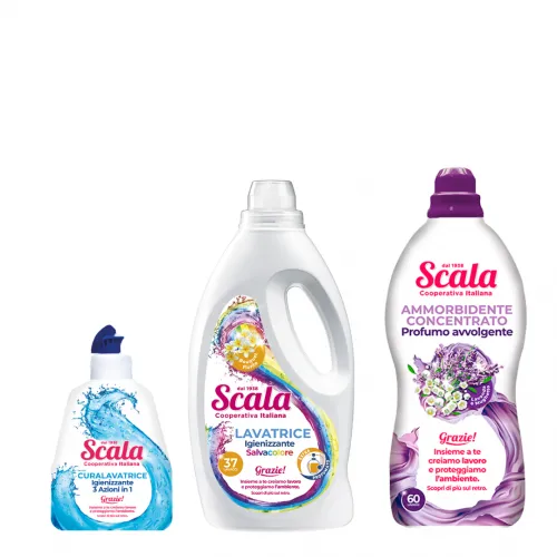 - Koncentruotas skalbinių minkštiklis Levandos ir Pakalnutė SCALA 1500ml (60 SKALBIMŲ). Šis minkštiklis, įkvėptas levandų ir pakalnutės kvapų, suteikia drabužiams gaivumo ir malonumo pojūtį. Jo sudėtyje esantys specialūs ingredientai saugo audinio pluoštą, natūraliai minkština ir palengvina lyginimą. Vieno butelio užtenka net iki 60 skalbimų.