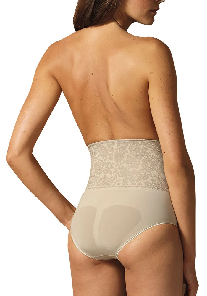 - Paaukštinta, stiprios kompresijos juosmens dalis su nėrinių imitacija labai gražiai atrodo ant kūno