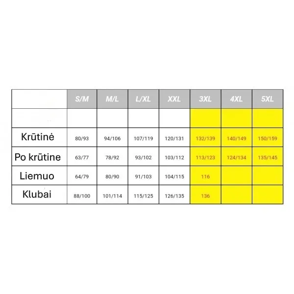 Dydžiai: didintas modelis SM, ML, XL (40-42/44; 44-46/48; 48-50/54)