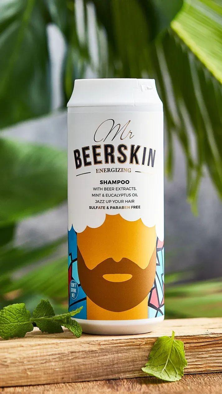 Galinga, bet švelni Mr. Beerskin energizuojančio šampūno formulė, pasižyminti puikiomis putojimo savybėmis ir geru valomuoju poveikiu, švelniai prausia plaukus ir galvos odą. Jis minkština ir drėkina plaukus, palieka juos žvilgančius ir blizgančius. Jo sudėtyje yra 4 pagrindiniai alaus ekstraktai su dideliu kiekiu biologiškai svarbių baltymų, vitaminų ir mineralų. Natūralūs melisų ir pipirmėčių ekstraktai gaivina ir suteikia mėtų kvapą, o mentolis suteikia gaivumo pojūtį. Eukaliptų aliejus ir D-pantenolis apsaugo plaukus nuo pažeidimų, tankina plaukus, didina jų žvilgesį ir blizgesį bei veikia kaip ilgalaikis plaukų drėkiklis. Raminantis 12 žolelių ekstraktų mišinys suteikia nuostabų aromatą ir veikdamas kartu su alantoinu atkuria, sumažina sausumą ir ramina.