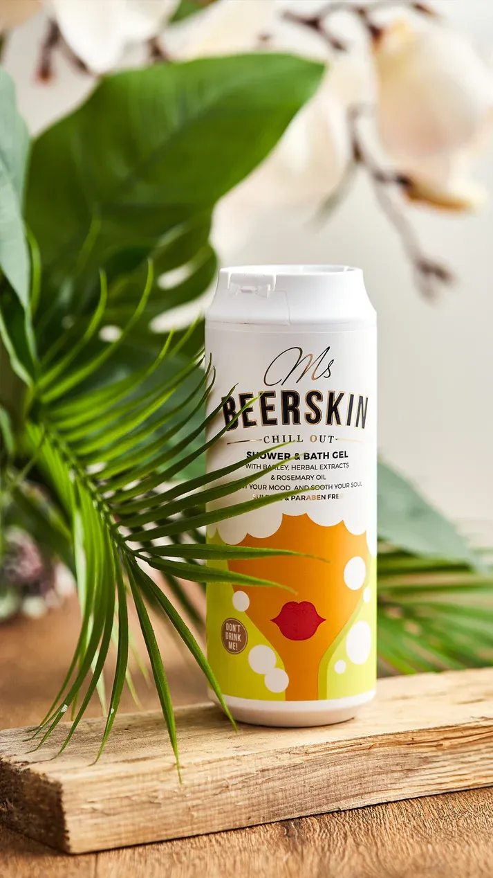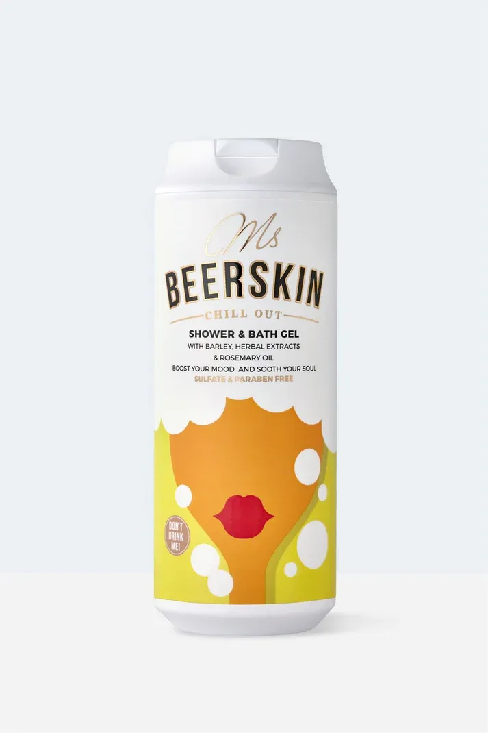 Ms Beerskin Chill Out dušo ir vonios želė yra švelni drėkinamoji ir raminamoji dušo ir vonios želė, skirta kasdieniam naudojimui. Sudėtyje yra miežių ir apynių ekstraktų, kuriuose gausu polifenolių ir kurie užtikrina efektyvią antioksidacinę apsaugą. Žalioji arbata, alijošiaus lapų ekstraktas ir pantenolis pagerina drėkinimą ir pasižymi priešuždegiminiu poveikiu. Natūralūs čiobrelių, medetkų ir ramunėlių ekstraktai atstato ir atgaivina, o rozmarinų aliejus ir alantoinas drėkina, mažina odos išsausėjimą, suteikia odai švelnumo pojūtį, puikiai ramina ir minkština odą. Švelni formulė su raminamuoju 11 žolelių ekstraktų ir 2 eterinių aliejų mišiniu suteikia odai švelnumo pojūtį priemonės naudojimo ir po jo metu bei suteikia puikų kvapą. Natūralus kvapas ir spalva.