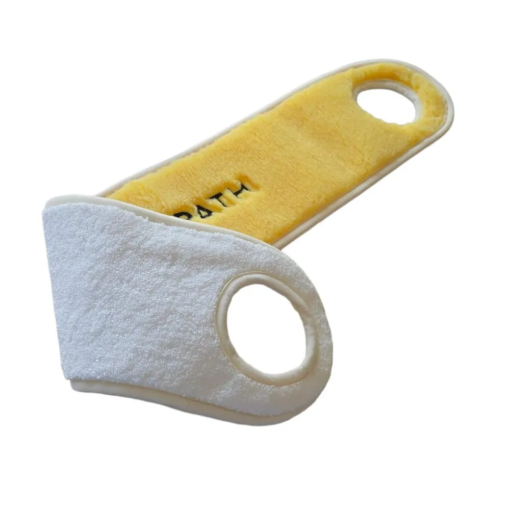 Raypath dvipusė kūno pirštinė: balta pusė prausimuisi, geltona – pilingui